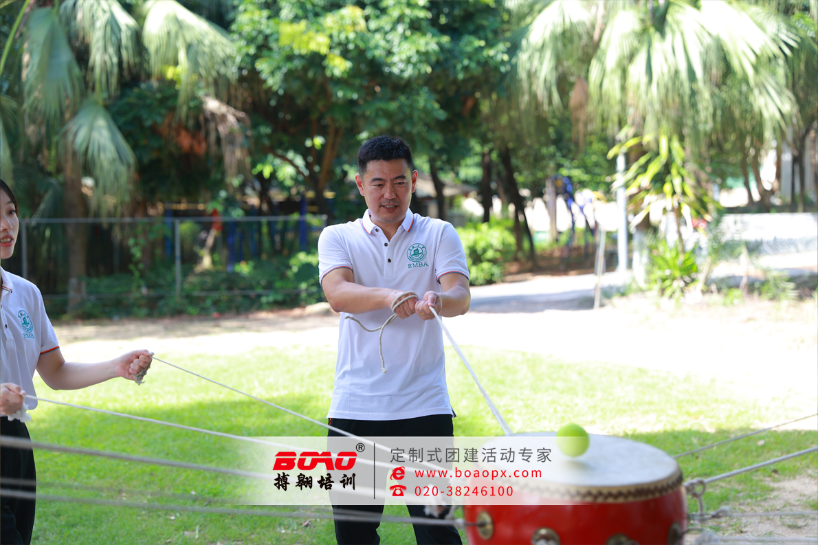第一天安排項目有美式沙包,戰(zhàn)略眼光的精準(zhǔn)投射這個看似簡單的投擲游戲瞬間變身商業(yè)決策模擬戰(zhàn)場。學(xué)員們需要像評估投資項目一樣計算角度、力度和風(fēng)險。"三分靠運氣,七分靠策略"的投資真理在這里展現(xiàn)得淋漓盡致。驛站傳書即是信息傳遞的 商戰(zhàn)啟示,當(dāng)信息需要經(jīng)過多人傳遞時,如何保證不失真?這個游戲讓EMBA學(xué)員們深刻體會到:在企業(yè)戰(zhàn)略執(zhí)行中,信息衰減可能帶來災(zāi)難性后果。極限時速則是效率革命的實戰(zhàn)演練,在規(guī)定時間內(nèi)內(nèi)完成任務(wù)的挑戰(zhàn),讓這群平時運籌帷幄的商業(yè)領(lǐng)袖們體驗了一把"創(chuàng)業(yè)公司節(jié)奏"。第二天拓展則是領(lǐng)導(dǎo)力與創(chuàng)新思維的碰撞,第一個項目就是鼓舞飛揚,鼓需要多人協(xié)同操作,像極了企業(yè)各部門的協(xié)同運作。第二個就是飛盤躲避賽,敏捷應(yīng)對市場變化,在快速移動中既要進攻又要防守,像極了瞬息萬變的市場環(huán)境。最后一個項目就是七巧板,鍛煉資源整合的商業(yè)智慧,,組在不知情的情況下被分配了不完整的拼圖資源,最終發(fā)現(xiàn)需要資源共享才能完成任務(wù)。這個設(shè)計精妙的游戲讓學(xué)員們深刻體會到商業(yè)生態(tài)中合作共贏的重要性。